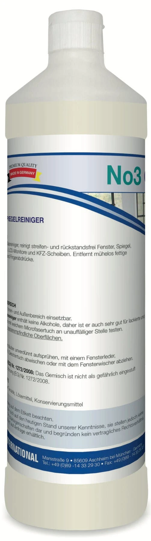 Gebrauchsfertiger Glasreiniger, reinigt streifen- und rückstandsfrei Fenster, Spiegel, Glasplatten, Vitrinen, LCD-Monitore und KFZ-Scheiben