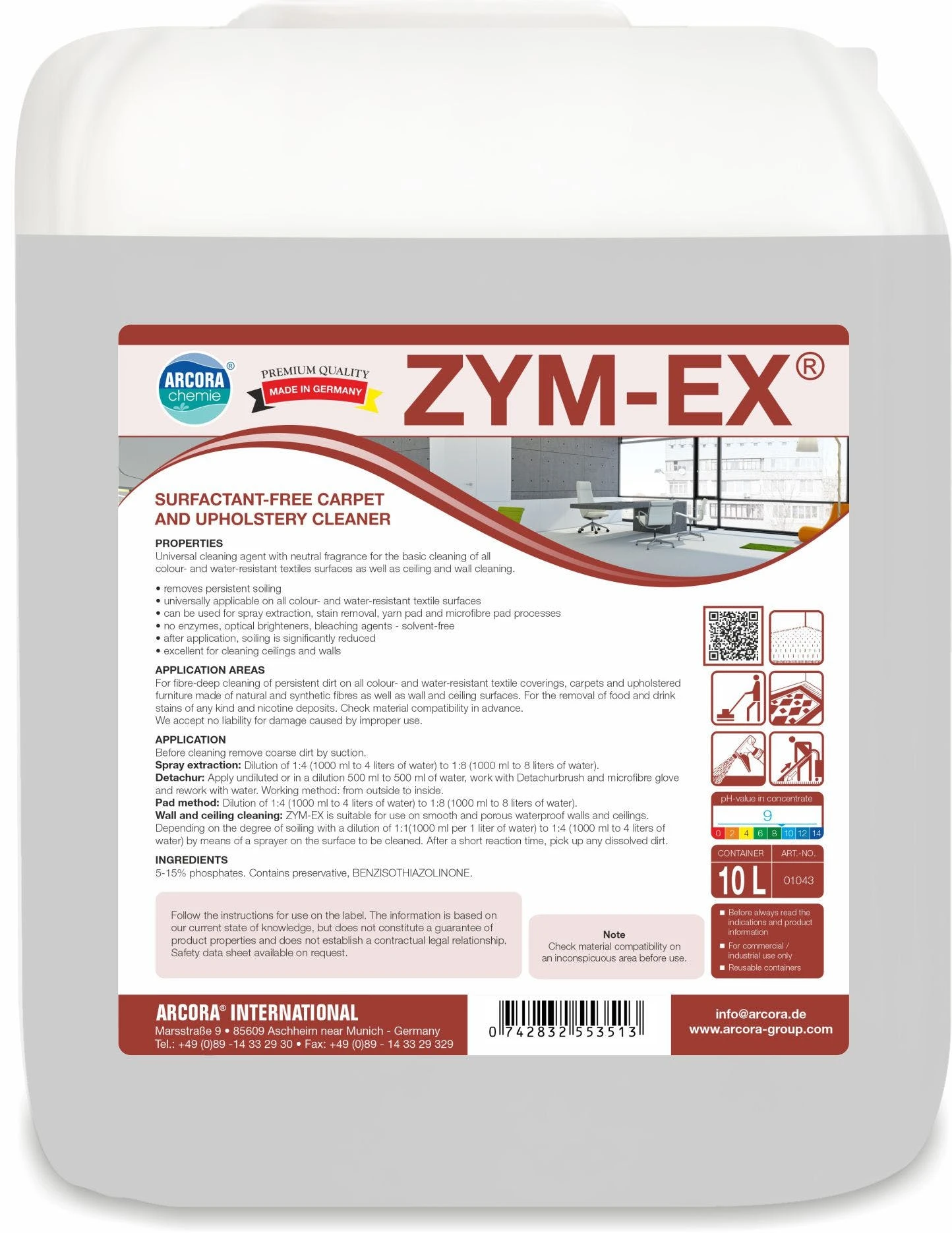 Universelles Reinigungsmittel mit neutraler Duftnote für die Grundreinigung aller farb- und wasserbeständigen textilen Oberflächen sowie Decken- und Wandreinigung.