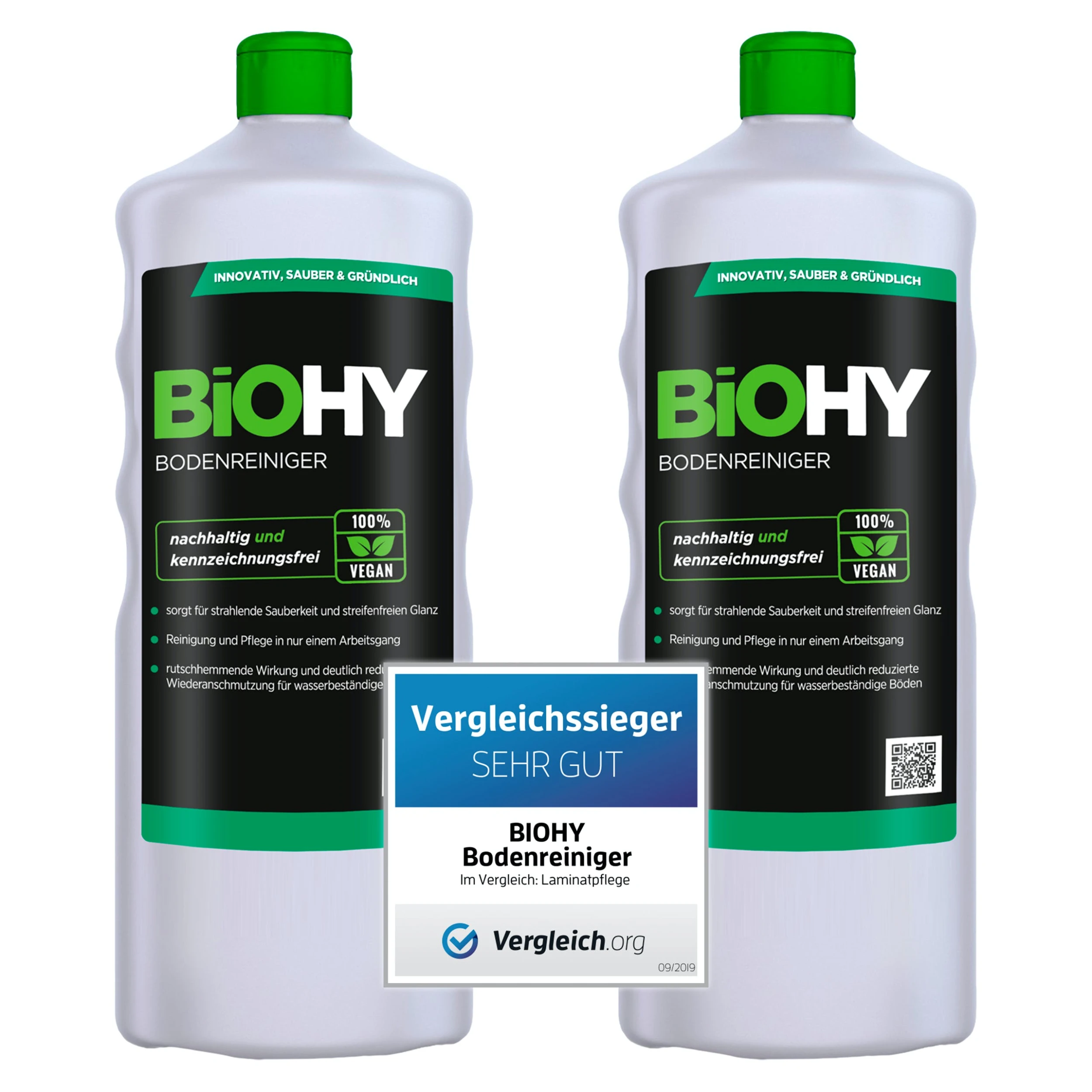 BiOHY Bodenreiniger (2x1l Flasche) | Konzentrat Für Alle Reinigungsgeräte Und Alle Hartböden | Angenehmer Geruch Und Streifenfreie Reinigung