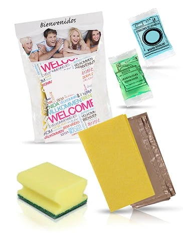 Inhalt: Die Bestellung umfasst 50 Reinigungssets. Jede Packung enthält: 1 gelben Putzlappen, 1 blauen Putzschwamm (zerkratzt nicht), 1 Flasche Geschirrspüler 30ml & 1 Mülltüte.