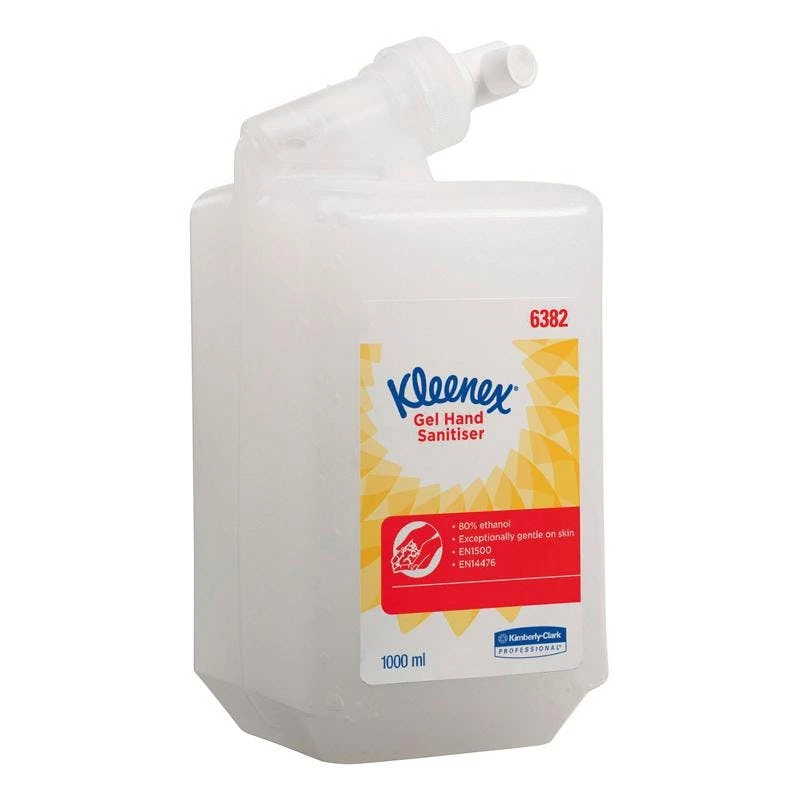 KLEENEX® Handdesinfektionsgel mit Alkohol Handdesinfektionsgel mit Alkohol, das die Bestimmungen der EU-Richtlinie 98/8/EU zu Biozid-Produkten erfüllt und in nur 30 Sekunden bis zu 99,99999 % häufig vorkommender Bakterien, Hefepilze und Viren abtötet, die zu Infektionen und Krankheiten führen können. Ideal für die Hosen- oder Jackentasche zum regelmäßigen Gebrauch in hygienekritischen Bereichen. Wirkt Kontaminationen entgegen, Trocknet schnell und hinterlässt ein weiches, angenehmes Hautgefühl. Gel ohne Farb- und Duftstoffe in weißen 100-ml-Flaschen für die Hosen- oder Jackentasche. 1 l Flasche