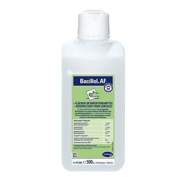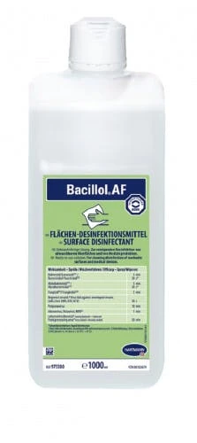 Bode Bacillol AF, RKI u. VAH zertifiziert Bode Bacillol alkolholische Schnelldesinfektion. Wirkt bakterizid (inkl. Salmonellen und Listerien), Fungizid, tuberkulozid, virusinaktivierend (darunter HBV/HIV, Adeno-, Papova-, Rota-, Vacciniaviren) Schnelle Einwirk- und Abtrocknungszeit VAH und RKI (Wirkungsbereich A) zertifiziert Informationen zur Anwendung und Einwirkzeit entnehmen Sie bitte dem Produktdatenblatt. Lieferumfang: 4 Flaschen à 0,5 Liter