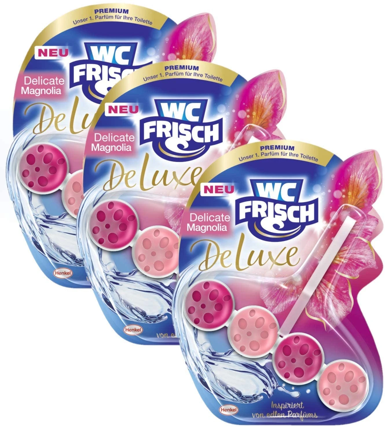 Finden Sie auch, dass Ihre Toilette einen einzigartigen und luxuriösen Geruch verdient hat? WC-Frisch DeLuxe ist das erste Parfüm für die Toilette. Inspiriert von elegant zarten Premium Düften sorgt WC-Frisch DeLuxe für einen langahaltenden frischen Duft im Badezimmer. Die Anti-Kalk Formel verhindert Kalkablagerungen und der aktive Reinigungsschaum reinigt die Toilette mit jeder Spülung und sorgt so für gründliche Sauberkeit in Ihrem WC. Die spezielle Premium-Verpackung ist außerdem noch recyclebar.