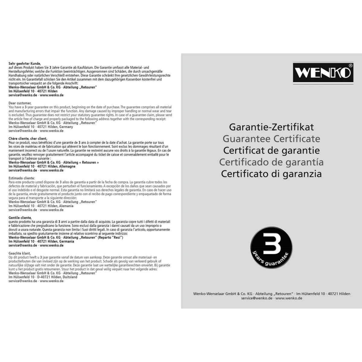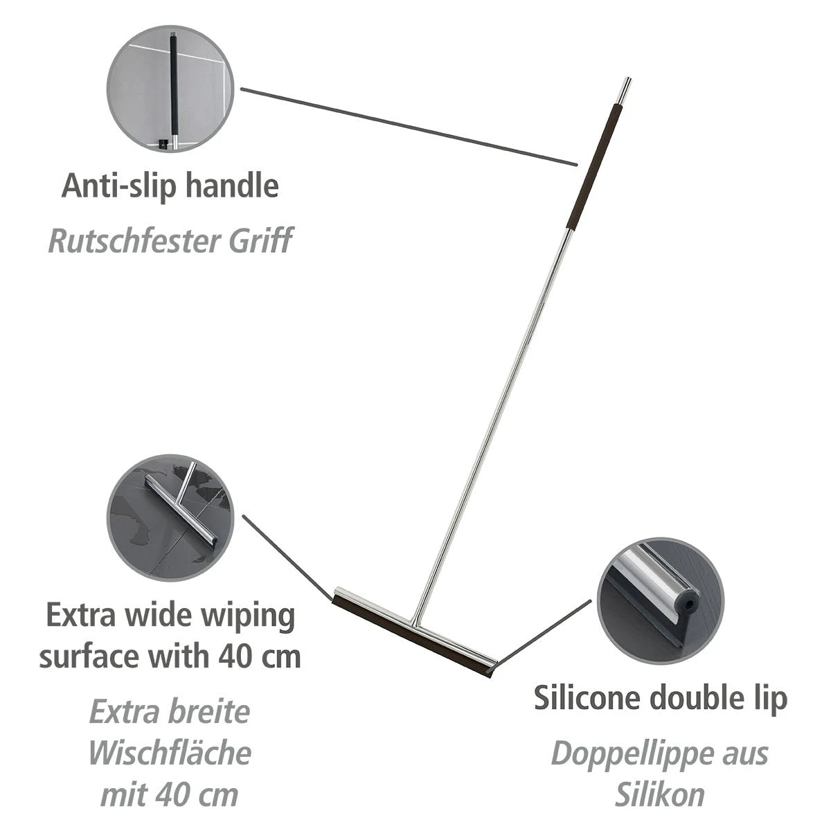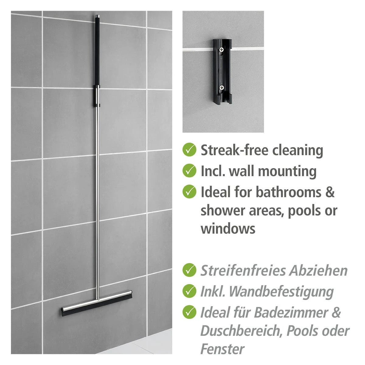 Wir von WENKO möchten nicht, dass Sie auf feuchten oder nassen Böden ausrutschen! Der Wasserschieber Rosole sorgt für sichere und trockene Böden im Innen- und Außenbereich. Der hochwertige Bodenabzieher verfügt über eine Lippe aus grauem Silikon, welche sich besonders für eine effektive Entfernung von überschüssigem Wasser im Badezimmer & Duschbereich oder in der Nähe von Pools eignet. Auch als Fensterwischer macht der Abzieher eine gute Figur und zeigt ein schnelles und streifenfreies Ergebnis. Der ergonomische Griff ist natürlich mit einer rutschfesten Beschichtung ausgestattet. Mit seiner großen Wischbreite von 40 cm kann der geniale Bodenwischer auch auf großen Flächen mit nur wenigen Zügen das Wasser entfernen. Mit der praktischen Wandbefestigung kann der Abzieher einfach an gewünschter Stelle aufgehängt werden und ist für den sofortigen Einsatz immer griffbereit. Schrauben und Dübel zur Wandmontage werden auch gleich mitgeliefert. Da wir viel Wert auf Qualität und Langlebigkeit legen, ist der hochwertige Wasserabzieher aus rostfreiem Edelstahl gefertigt und kommt in einem glänzenden Finish daher. Auf dieses Produkt haben Sie 3 Jahre Garantie ab Kaufdatum. Die Garantie umfasst alle Material- und Herstellungsfehler, welche die Funktion beeinträchtigen. Ausgenommen sind Schäden, die durch unsachgemäße Handhabung oder natürlichen Verschleiß entstehen. Diese Garantie schränkt Ihre gesetzlichen Gewährleistungsrechte nicht ein. Im Garantiefall schicken Sie den Artikel zusammen mit dem dazugehörigen Kassenbon kostenfrei und transportsicher verpackt an die folgende Anschrift: Wenko-Wenselaar GmbH & Co. KG · Abteilung „Retouren“ Im Hülsenfeld 17 · 40721 Hilden [email protected]